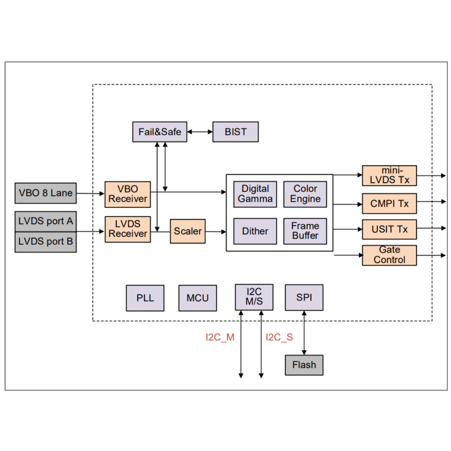• Support mini-LVDS 1/2/4 port-3/6 pair